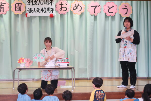 先生たちからの出し物はクレヨンシアターの急げ!!クレヨン救急隊でした。